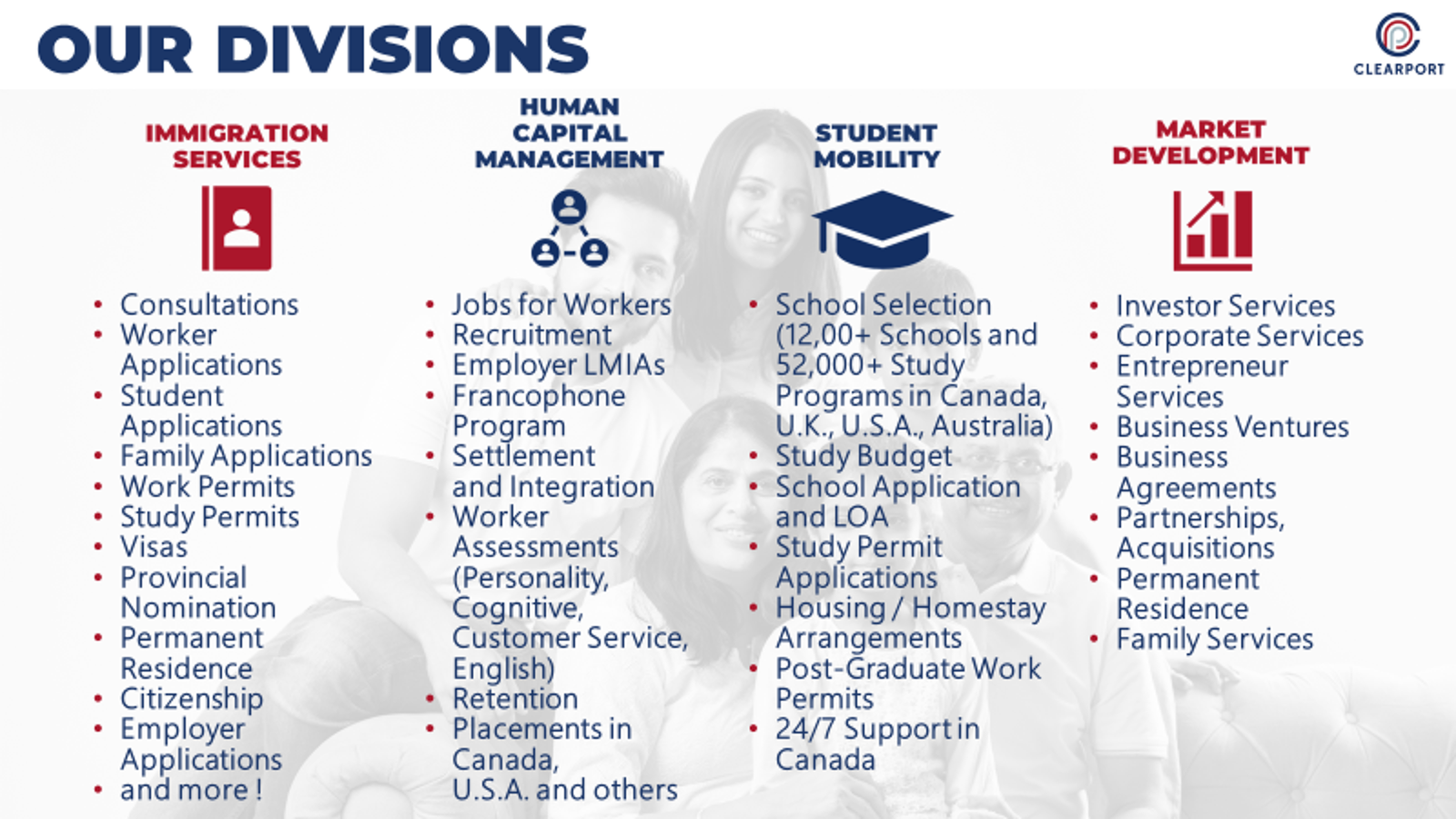 With a team of in-house Certified Immigration Consultants based in our main Calgary office, and abiding by strict Canadian standards, we offer Immigration Services for Employers, Businesses and Individuals alike.